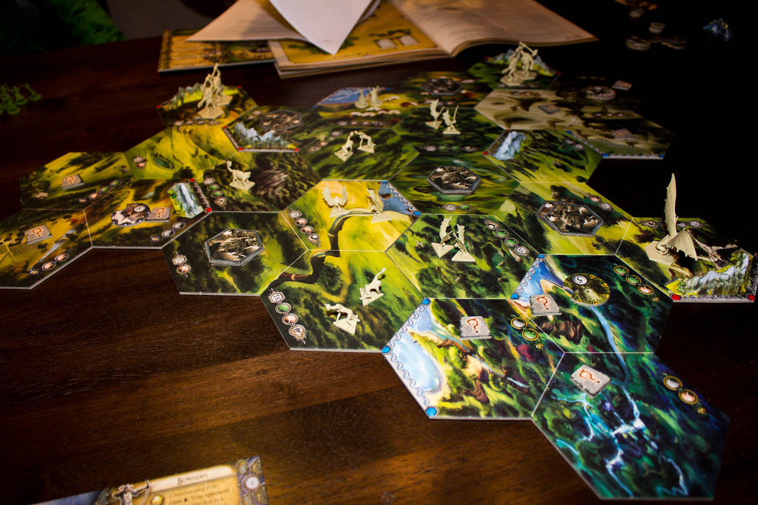 Første omgang gikk helt i vasken. Vi kom ikke lenger enn forbi Moria før Sauron hadde møtt oss på midtveien og Vegard som ringbæreren Frodo gikk pent og leverte ringen til den onde fyrsten. Vi trodde vi spilte noe feil, men fant ut at det gjorde vi. En titt på de engelske reglene på nettet og vi så lyset, klar for en annen omgang. Denne gangen gikk det mye bedre, og vi kom et godt stykke på vei. Nå var vi også forberedt på hva som kunne skje om vi ikke hadde kommet forbi vennskapseventyret før en viss ting oppstod, og kunne klare å beseire dette. Ringbæreren ble også byttet på underveis for å dele på byrden. Takras som Sam hadde bedre motstandsevne mot ringens mørke.