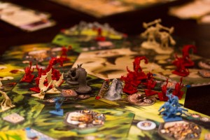 Etter drøye 2.5 timer med oppsett og regelforklaring var vi i gang med første runde. Det gikk ganske fredelig for seg og alle ville være diplomatiske med de nøytrale figurene for å få dem som allierte. Men det viste seg jo at innflytelse var en viktig ting å ta var på for auksjonsrunder og tittelkamper, i tillegg til å være gode for å få nye helter og skape allianser. De var rett og slett viktige.
