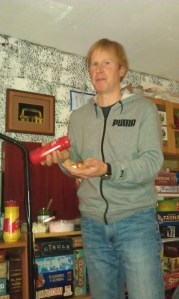 Sven ankom også og dermed var vi PG-koden på 7 spillere. Og mens vi diskuterte hva vi skulle gjøre ble PG-tapas servert i Grotten. Det ble køtilstander og mange fornøyde fjes i pølse.. eh… Tapas-køa. Mye godt tilbehør hører også med i tillegg til pakkeåpning. Den beste pakken må vel sies (uten å såre noen) å være spillet Hffnffl, eller hva det heter, det norske vikingespillet fra Middelalderen som Peter tok med. Takk, takk til alle!!! Joan glimtet med sitt fravær, så hvorfor ikke ta en skikkelig Racingkveld? Saulius og Vegard rigget Pitchcar, Sveinmain sprang og hentet Yello, med «the Race» på CD og dermed var vi i gang.