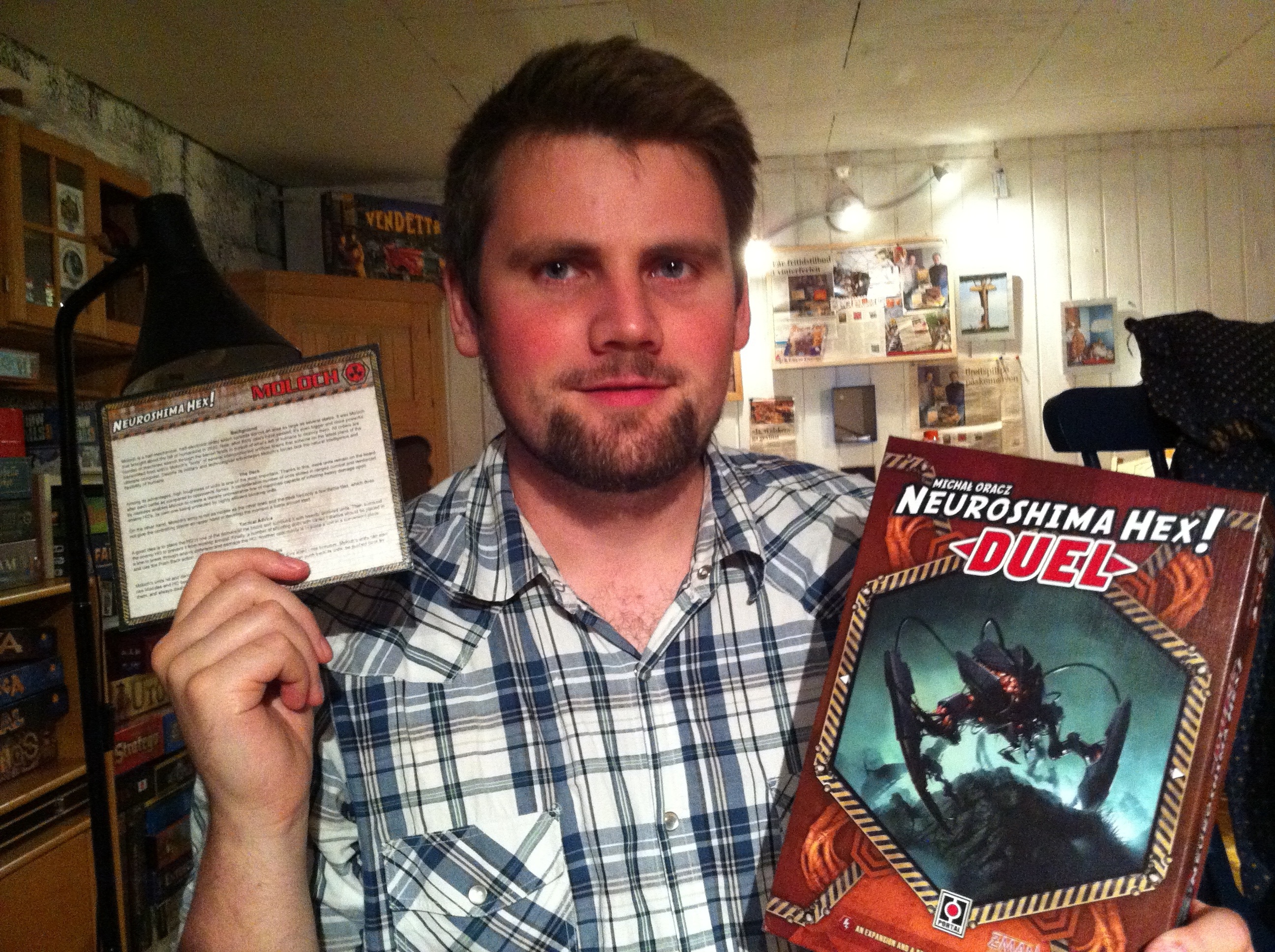 Peter spilte de grønne Outpost, en av de offisielle menneskenearmeene i spillet. Steinar fikk de blå cybermutantene Borgo, hvis taktiske tips var å plassere hovedkvarteret i midten av kartet omringet av vennlige enheter. Takras ble de gule menneskene, mennesker som går kledd mer lik til høyre av Takras enn noe annet. Kampen var i gang, og Steinar fikk bank. Og litt til. Og enda litt. Hans taktiske råd var å være omringet av vennlige enheter. Det hjelper lite når både Peter og Takras setter inn total front som en velkomstgave til vår gjest. Men i Neuroshima Hex er ingen seier gitt før i de aller siste rundene. Takras lå godt an til å komme på andre plass, og Steinar hadde bare 1 liv igjen. Men det ene livet klarte han å holde på helt til Takras var feid av banen av Peters gjentagende angrep. Men like etter tok Peter nådestøtet, og sprengte Steinars hovedkvarter til filler. Her ble det total wipeout og bare Peter kunne stå igjen som seierherre. For å forstå litt hva Neuroshima Hex går ut på, så sjekk videoen fra Takras litt lenger nede.