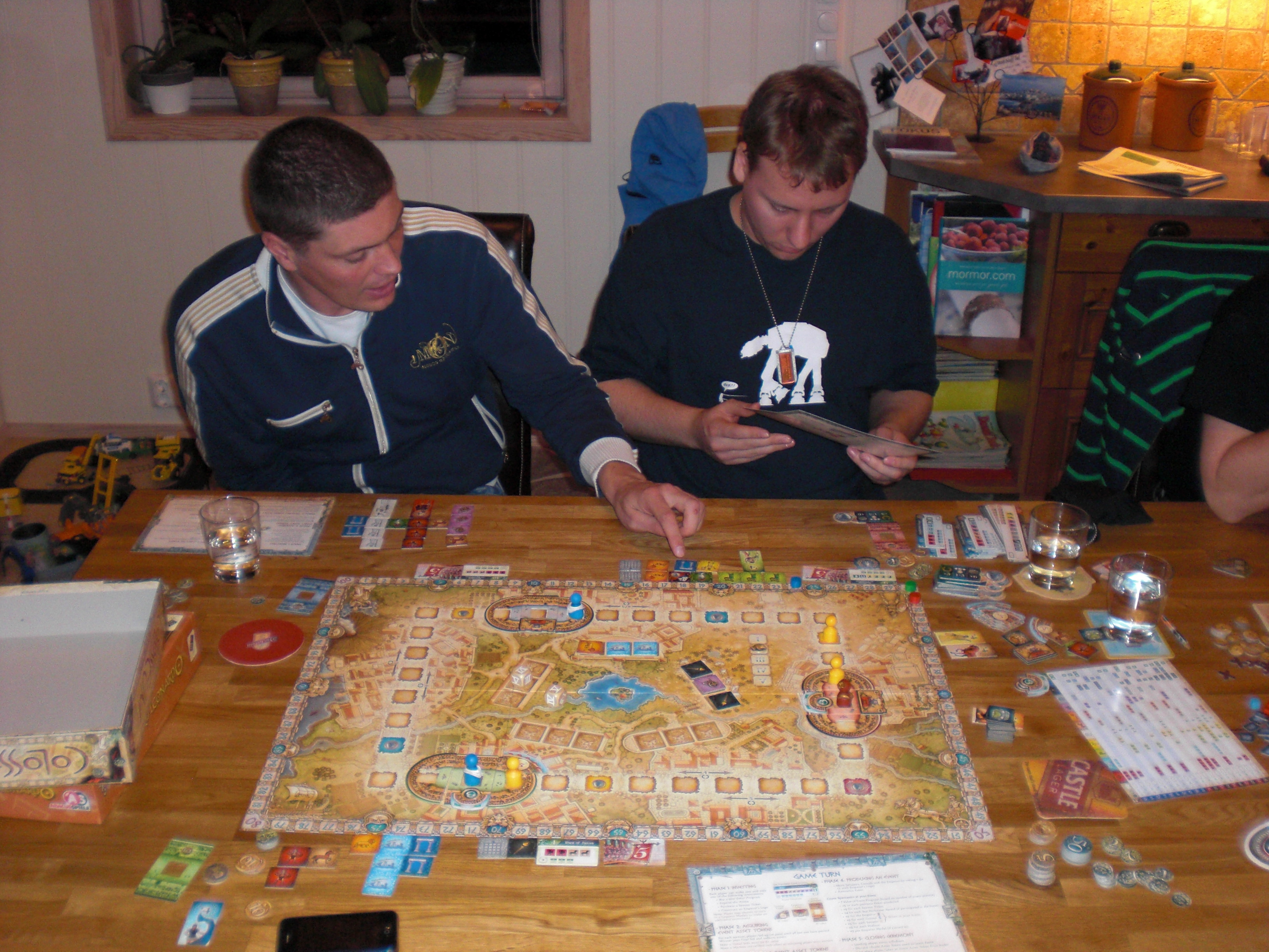 Vi hadde en stor fordel ved at alle visste til enhver tid hva slags sesong som ventet oss, og ikke minst når sesongen skulle inntreffe. Alle spilte med åpne kort, men planene var likevel ikke lette å gjennomskue. Peter og Black Ant hadde spilt dette før og hadde en enorm fordel. Hollender og Takras var ferskinger til denne fullverdige middagsretten og gjorde feilgrep helt fra starten av. Takras og Hollender ble tvunget tidlig i spillet til å fokusere på skadereduksjon, mens Peter og Black Ant kunne sanke inn poeng. De to sistnevntet lå godt an til å vinne, det var tydelig etter de tre første rundene. Peter tenkte flere steg fremover og hadde alltid ressurser klare til å sanke inn poeng. Black Ant samlet opp poeng i form av kunnskap, og raste avgårde fra alle spillerne. Takras lå flerfoldige poeng bak alle sammen, og kunne bare gjøre fånyttes forsøk på å skape hindringer for de andre.