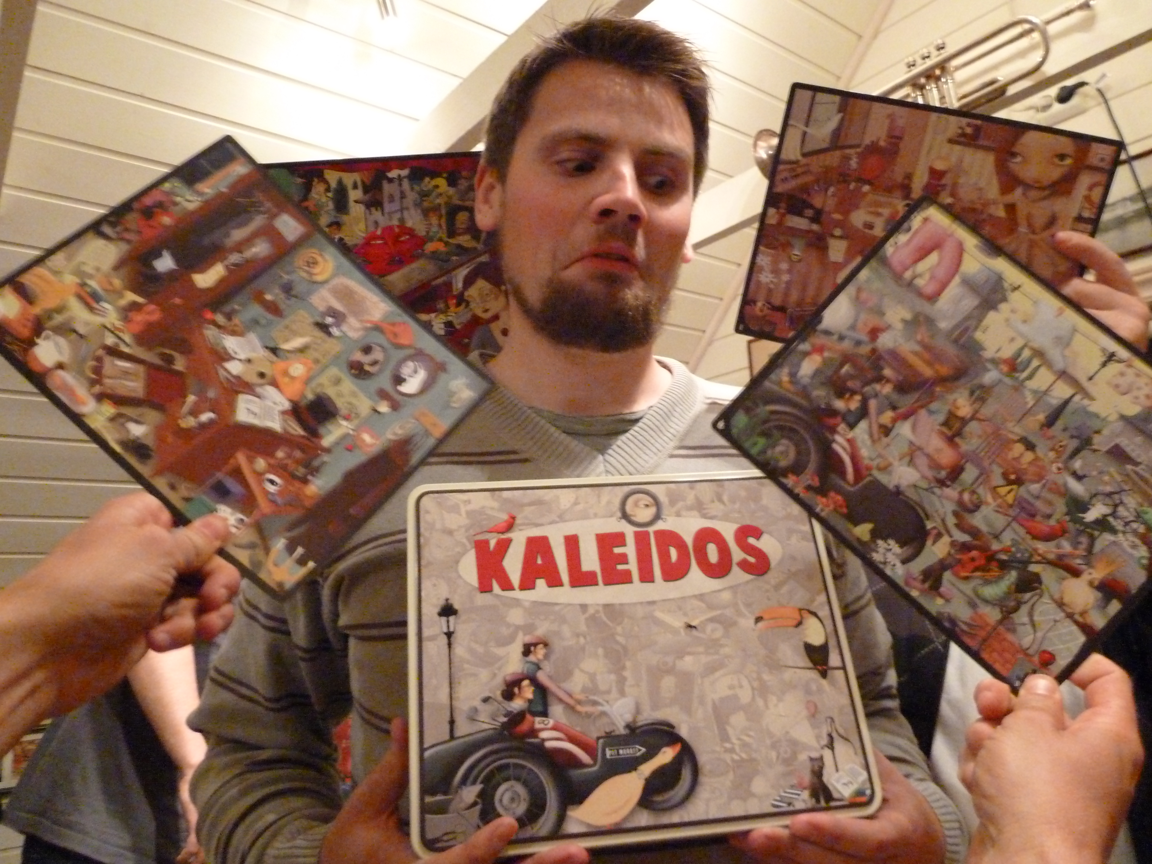For at kvelden ikke skulle bli helt mislykket tok vi 5 som var igjen et par smakebitrunder av Kaleidos. Hollender fortalte gjetord om spillet som Siv Braut elsket på SpillOrama. Vi spilte 2 brett og kjørte igang. André var skikkelig kreativ og vi andre slet med å holde følge og han ledet 1. runde med 10 poeng på alle oss andre. I andre runde skulle André få kamp, og det ble det også. Sveinmain klarte å få hele 14 poeng, men André klarte også denne gangen å få flest poeng og ble utnevnt til dagens Siv Braut – Kaleidosmester. Alle syntes kvaliteten spillet hadde som selskapsspill overrasket positivt. Dette spillet havner nok i en del selskaper rundt om på Jørpeland i vinter!!!