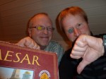 Mange måtte tildig opp og sprang hjem så også Takras, men da Ave Ceasar ble nevnt så snudde han i døra og hev seg med noe han neppe angret på. Ave Ceasar er vel det spillet med flest morsomme historier i PGs historie, med blokkeringer, og at folk glemmer å gå innom Ceasar, denne kvelden skulle også bli