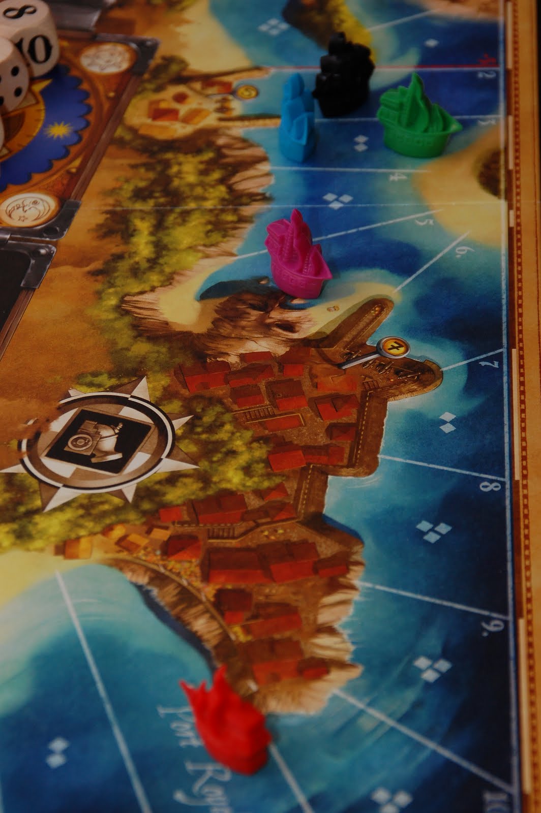 Det ble både nedturer og oppturer i PG denne mandagen. Hele 6 spillere hadde møtt opp for å få sin ukentlige dose brettspill. For oss som er avhengige av brettspill hadde det vært en ide å få spilt oftere. Kanskje på tide å lansere brettspilling på blå resept, slik at vi kan hente ut en dose på apoteket når vi trenger det som mest. Men det som definitivt ikke bør hentes ut på apoteket er Jamaica. Sveinmain fant frem spillet som bare fikk en lunken mottakelse i PG for noen uker siden. Denne gangen også med 6 spillere skulle vi seile rundt øya, samle penger og mat, og robbe motspillerne. Sveinmain måtte holde motet oppe på 2 litt negative pirater i Ant og Hollender. Terningene kastet 1 og 2 gikk igjen og gjorde fremgangen i spillet lav. Når i tillegg penger og mat ble mangelvare og båtene sto stille i flere omganger, ble det mytteri-tilstander rundt bordet. Kaptein main truet med planken for de som ikke fullførte, og fikk viljen sin igjennom. En time senere klarte Peter og krysse mållinjen til stor glede for alle. Han hadde båten full av gull og avsluttet som en verdig pirat. Oss andre pirater som ikke var like gode seilere måtte kjempe om 3-6 plassen. For mot spillets gang klarte Hollender gjennom å ligge et hav bak alle oss andre, uten vilje til å flytte båten fremover, og fylle båten sin med gull. Han lå så langt bak at han ikke kom i konflikt med andre båter og fylte opp max med gull i de 5 kammerene sine, og kunne på den måten tatt seieren hadde han hatt litt flaks. Hadde han klart det hadde nok Jamaica havnet i søpla, men nå havner det på hylla i stedet. Dette spillet var overhode ikke noe for gutta i PG, selv Sveinmain måtte innrømme det, selv om det satt langt inne.