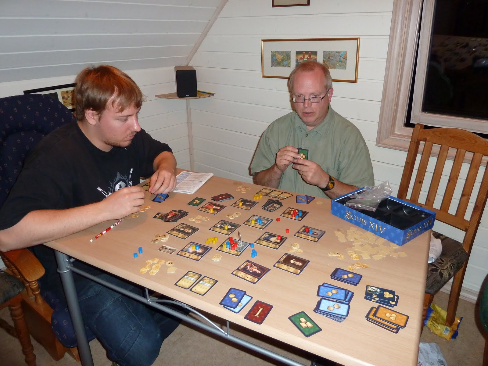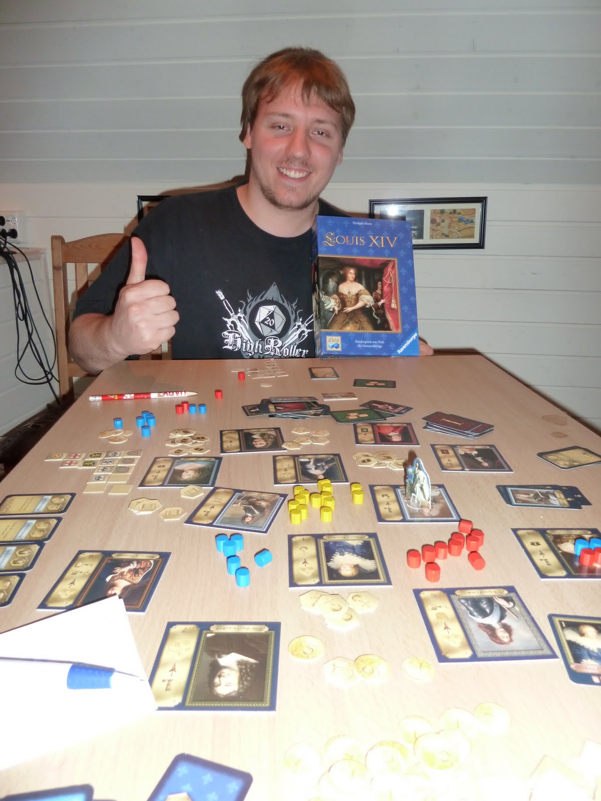 Vi delte oss så opp i 2 bord og spilte Louis XIV på det ene bordet og Tori på det andre. Louis XIV er alltid en suksess, selv med kompliserte regler. Vegard hadde ikke spilet det før, men fikk likevel kjapt dreisen på spillet. Peter og Hollender kjempet som helter, og spillet gikk såpass kjapt unna som en time. Da måtte det fintelling til for å kåre en vinner. 1. Vegard 43(30+13) 2. Hollender 40(25+15) 3. Peter 31(25+6)