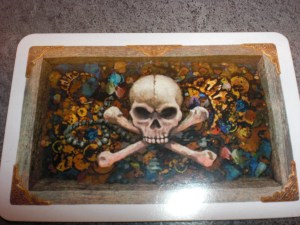 , kan neste man bestemme om han vil ha dette kortet. Så fortsetter dette til alle kortene er fordelt. Eller kanskje ikke, for i løpet av spillet er det to forbannelseskort som kan ødelegge festen for de som venter i spenning på mye gull. Når et slikt kort blir snudd, er den resterende utbetalingen i denne skatten over. De som fortsatt har vindroser liggende i denne rekken, får ikke poeng og må dessuten betale en amulett for å unngå å miste det høyeste poengkortet man har fått hittil.
