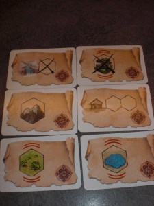 Første spill ut var Samurai. Peter som fikk forklart reglene 2 ganger startet det hele med å legge ut feil brikke, og stemningen var satt. Her skulle det kjempes om innflytelse i Ris, Religion og Status. Den som omriget disse med mest innflytelse fikk brikkene, og i kjent Knizia stil må den som vinner ha flest av et slag, og da teller en poeng for antall av det slaget en ikke hadde mest av. Tok du an?